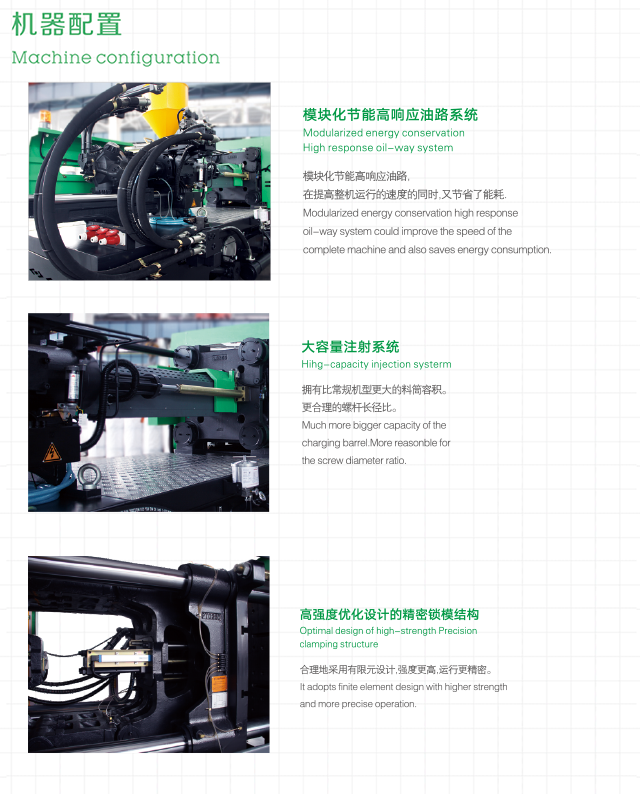 拥有比常规机型更大的料筒容积,更合理的螺杆长径比